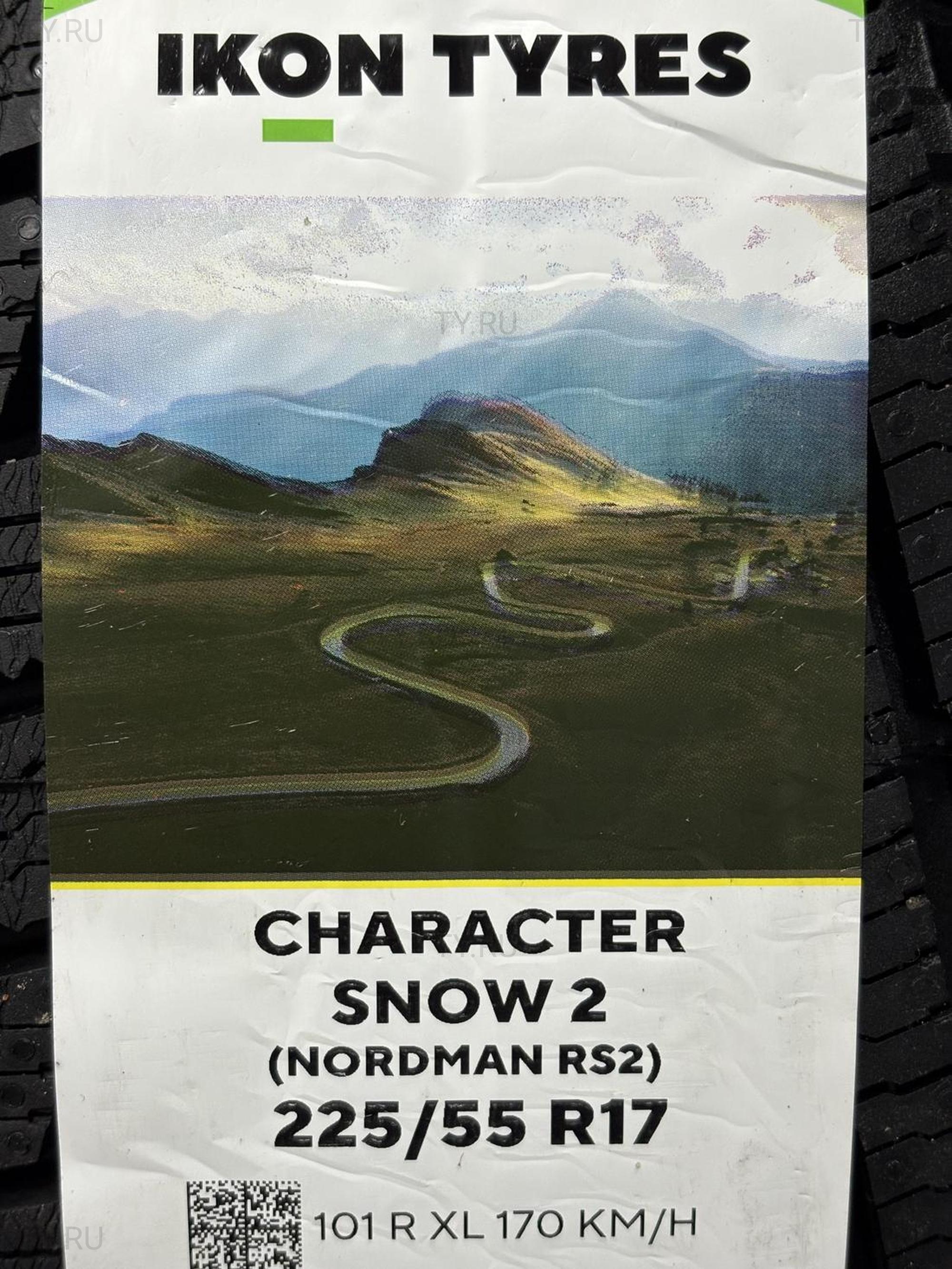 Шины Ikon Character Snow 2 (до 2025 года модель называлась Ikon Nordman RS2) — это комфортные и сбалансированные фрикционные зимние шины, созданные для непростых зимних условий. Уверенное сцепление поддерживается даже при трудных погодных условиях. Комфортные и тихие шины подходят для ежедневного использования на зимних городских дорогах, одинаково качественно справляясь как со снегопадами, так и с аквапланированием при плюсовой температуре. Эффективное торможение на заснеженной дороге обеспечивается тормозными усилителями со специальным дизайном. Надёжность сцепления обеспечивается пятном контакта с увеличенной за счёт сетки клинообразных ламелей площадью.